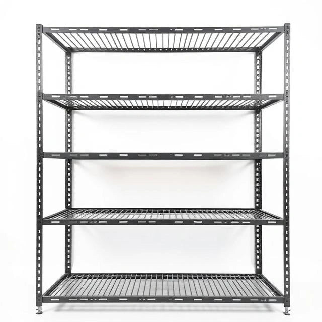 Organize with ease using the IndustrialMetal Storage Rack. This rack combines a dark metal finish with open shelving, offering a bold, industrial look. Perfect for kitchens, garages, and loft spaces.